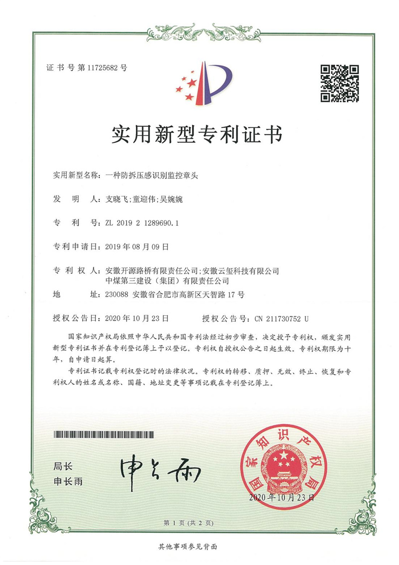 • 一種防拆壓感識別監控章頭