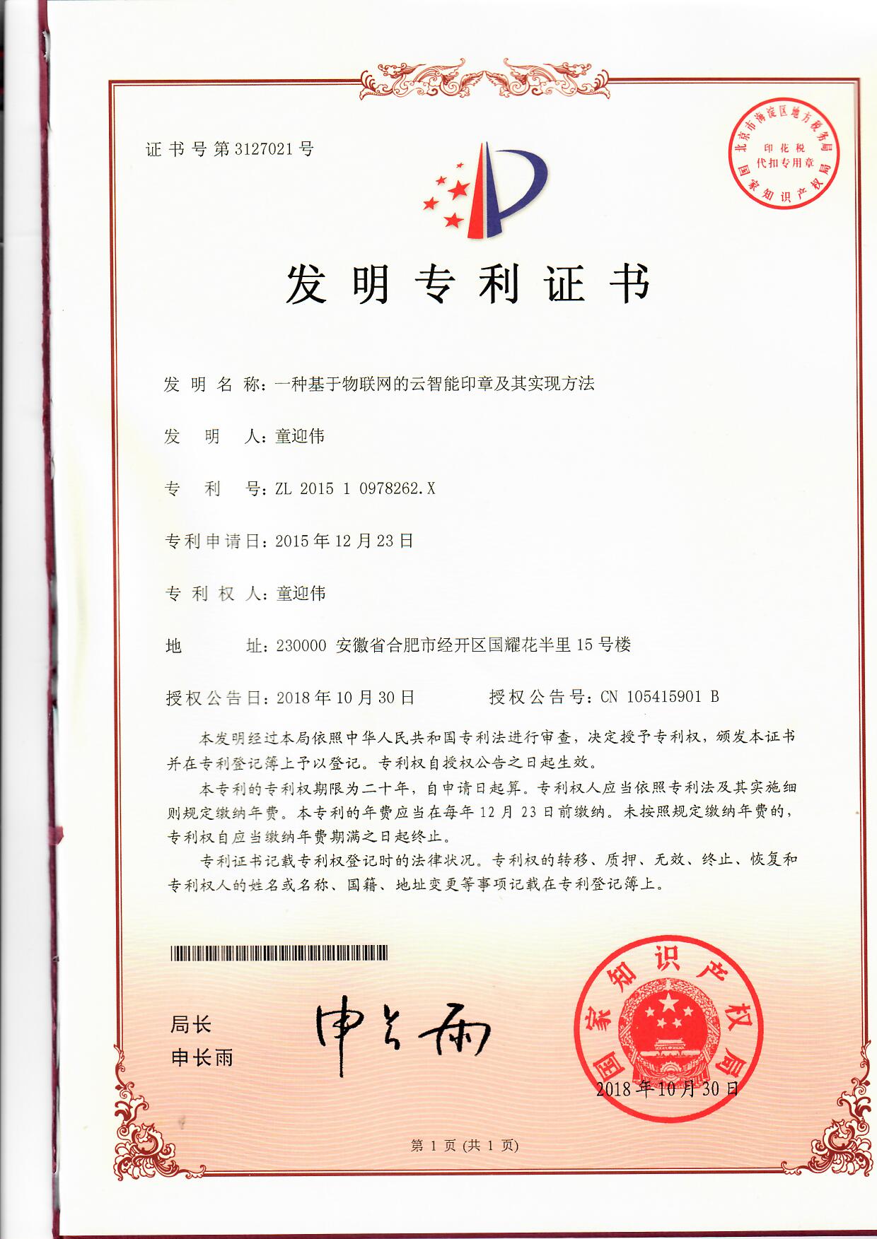 • .一種基于物聯網的云智能印章及其實現方法